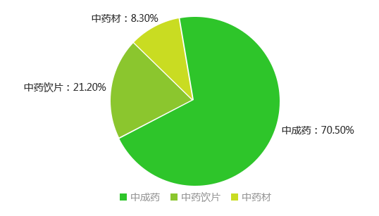 中醫藥是中國特色醫療產業板塊,是國內大眾普遍認可的醫療方式之一,區別于普通西醫服務,中醫藥產業中國內企業占據絕對的優勢地位,即便未來很難得到全球市場的普遍認可,在國內市場中也有極大的成長潛力空間,截止2017年,中國中醫藥產業的市場規模達到9970億元,其中中成藥規模占比70.5%,中藥飲片規模占比21.2%,中藥材占比8.3%,由中醫藥產業投射到大健康產業中所產生的市場潛力超過2萬億元。