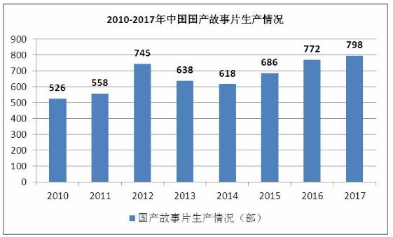 2017年,國產電影創作生產繼續保持活躍態勢。全年共生產故事片798部,同比增長3.4%,電影產量依舊保持世界前列。這得益于近年來商事制度改革的實施,更多的電影公司出現,使得行業陣容不斷壯大。不同的企業有不同的追求、理念、風格和優勢,從而極大地促進了電影創作的多樣化和豐富性。