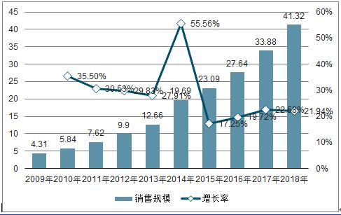 2009-2019年國內鹽酸氨基葡萄糖制劑市場銷售及增長情況