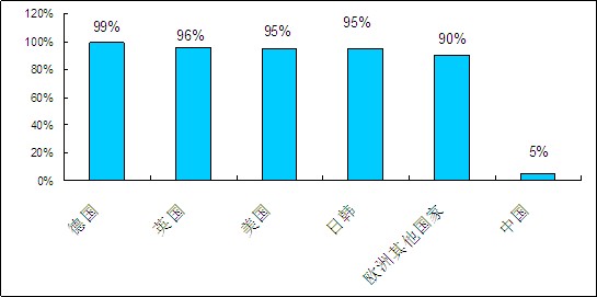 盡管中國新風系統近幾年取得了穩定的發展,并且呈現出逐步上升的趨勢,但相較于英國、美國、日本等發達國家,新風系統在中國的發展只能稱得上是起步階段。目前新風系統在歐美家庭的普及率已經高達90%以上;70年代起,西班牙90%的新建房子都安裝上了新風系統;在英國、法國、德國等地,新風系統已經和建筑物融為一體。數據顯示,我國新風系統市場普及率不足5%,相比歐美、日韓等,我國市場普及率還有較大提升空間。