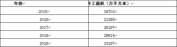 圖表:2015-2019年中國工業(yè)地產(chǎn)行業(yè)新開工面積情況