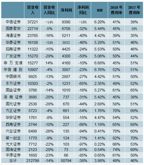 圖表:2018年上市券商經(jīng)營數(shù)據(jù)(百萬元)