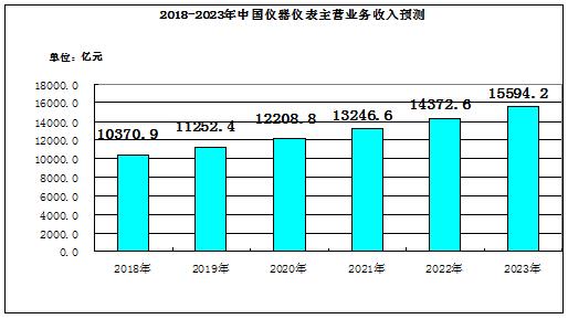 圖表:2018-2023年中國儀器儀表主營業務收入預測