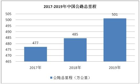據交通運輸部統計數據顯示,2010年以來,全國公路總里程不斷增加。截止到2019年末,全國公路總里程501.25萬公里,比2018年增加16.60萬公里。公路密度52.21公里/百平方公里,增加1.73公里/百平方公里。