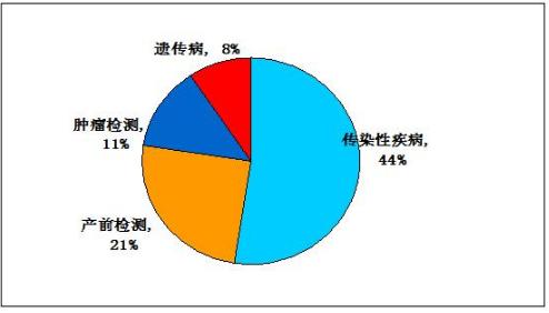 從市場份額分布看,國內的核酸檢測市場以傳染性疾病核酸檢測為主,占比為44%。