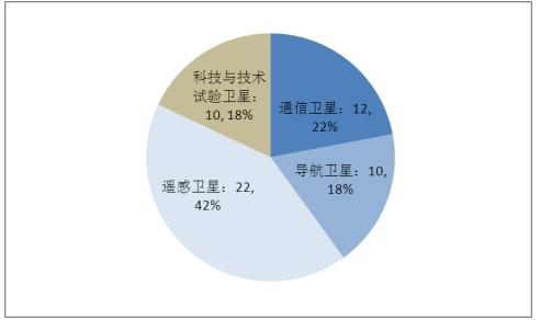 圖表:2019年中國各類衛星發射數量占比按功能分布(單位:顆)
