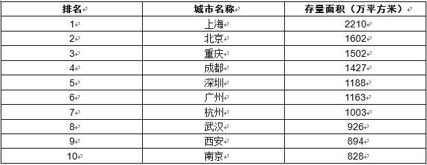 2、國內城市購物中心增量面積排名