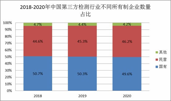 圖表:2018-2020年中國第三方檢測行業(yè)不同所有制企業(yè)數(shù)量占比