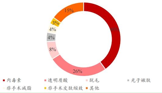 圖表:全球(除中國外)非手術類醫美項目中肉毒素和透明質酸受青睞