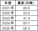 圖表:2021-2025年中國高功率石墨電極需求預測