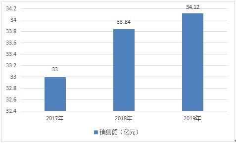 2017年全息投影設備銷售額為33億元,至2019年銷售額增長至34.12億元。