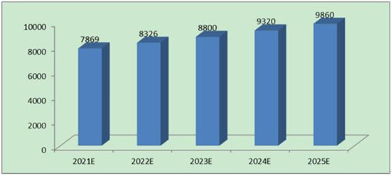 圖表:2021-2025年建筑檢測行業企業(單位:家)