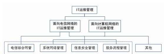 IT運維管理可以細分為面向計算機網(wǎng)絡(luò)的IT運維管理和面向電信網(wǎng)絡(luò)的IT運維管理,兩者管理的對象不同,但其解決方案的總體框架是一致的,其主要功能是為信息系統(tǒng)與網(wǎng)絡(luò)的安全、穩(wěn)定和高效運行提供技術(shù)保障。