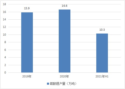 圖表:2019-2021年H1碳酸鋰產量(萬噸)
