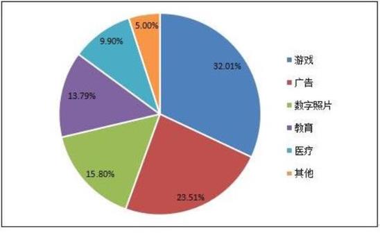 裸眼3d行業投資中游戲行業占比32.01%,廣告行業占比23.51%,數字照片占比15.8%,教育占比13.79%,醫療占比9.9%。