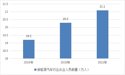 圖表:2019-2021年中國新能源汽車行業從業人員數量情況