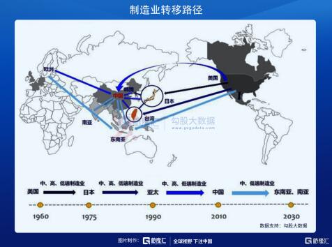 產業轉移是個漫長的過程。80年代,中國大陸從日本和四小龍手中接過的,主要是五金、塑膠、服裝、玩具等低端制造。90年代,電子零配件也轉移過來,而后就是汽車、船舶、機床這類要求一定技術含量的產業。然而,再強大的產能,也無法得到定價權,我們長期處于“1億條牛仔褲換一架波音飛機”的窘境中。即便到現在,中國生產了全球近一半的終端產品零部件,但從整體產業鏈來看,行業70%以上的市值,仍在美國科技公司手中。同時,目前在亞洲,中國大陸的人工成本,僅次于韓國、日本、新加坡,紅利期即將消退。除了部分護城河極深的產業,低端制造業正加速向南亞、東南亞轉移。
