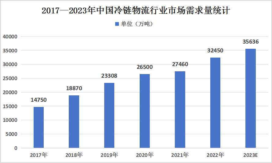 圖表:2017—2023年中國冷鏈物流行業(yè)市場需求量統(tǒng)計