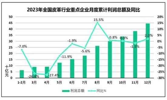 中國皮革協會掌握數據顯示,2023年,我國皮革主體行業重點企業完成銷售收入近 8300 億元,同比下降 5.4%。全國皮革主體行業重點企業利潤總額約446億元,同比增長2.0%,銷售收入利潤率為5.4%,與上年同期相比提高0.4個百分點。
