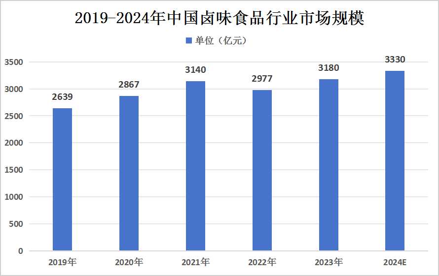 鹵制食品行業(yè)近年來迎來較快增長,市場規(guī)模顯著擴(kuò)大。根據(jù)中研普華產(chǎn)業(yè)研究院發(fā)布的《2024-2029年鹵制食品行業(yè)市場調(diào)查分析及發(fā)展前景展望報(bào)告》顯示,2021年中國鹵制品行業(yè)市場規(guī)模達(dá)到3140億元,同比上漲9.52%。而到2022年,鹵制品行業(yè)受國內(nèi)疫情持續(xù)反復(fù),消費(fèi)客流量減少,以及原材料價(jià)格波動(dòng)等因素的影響,市場規(guī)模同比下降5.19%。2023年鹵制品行業(yè)需求回暖,相關(guān)品牌不斷拓展市場,使得市場規(guī)模同比上漲6.82%,鹵味食品行業(yè)市場規(guī)模達(dá)到約3180億元。報(bào)告預(yù)測,2024年行業(yè)規(guī)模將增長至3330億元。