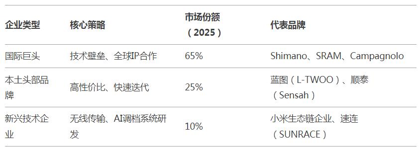 國產品牌藍圖(L-TWOO):通過自主研發無線電子變速技術,2025年市場份額增至12%,成為本土品牌突圍標桿。