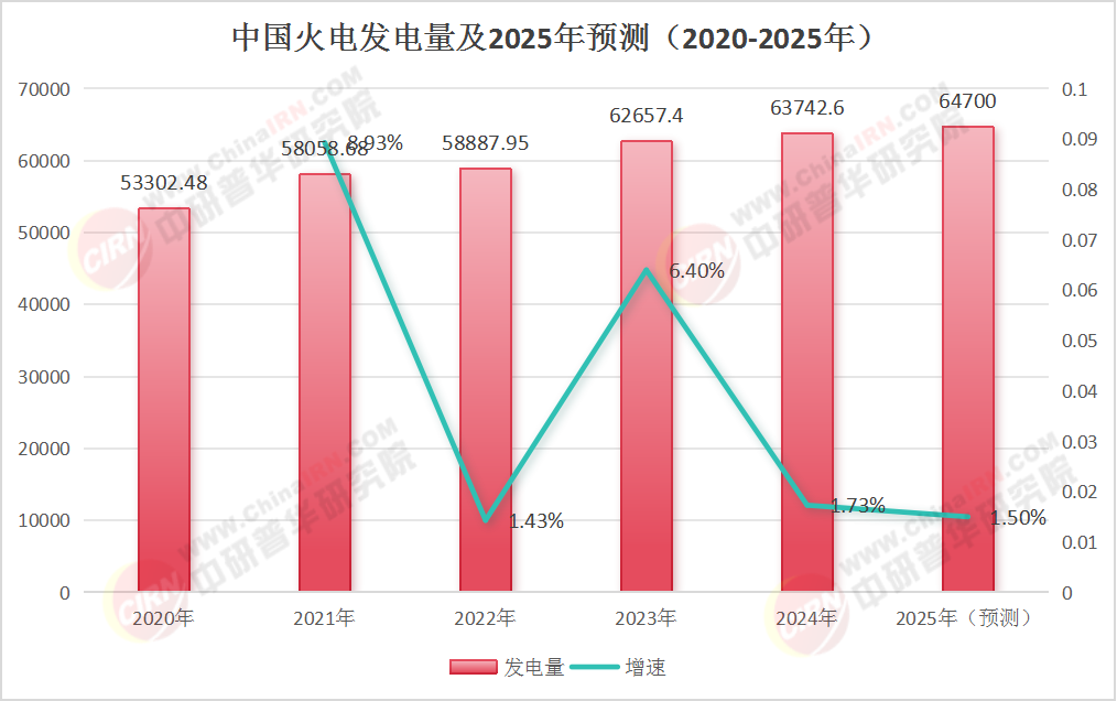 表1 中國火電發(fā)電量及2025年預(yù)測(cè)(2020-2025年)