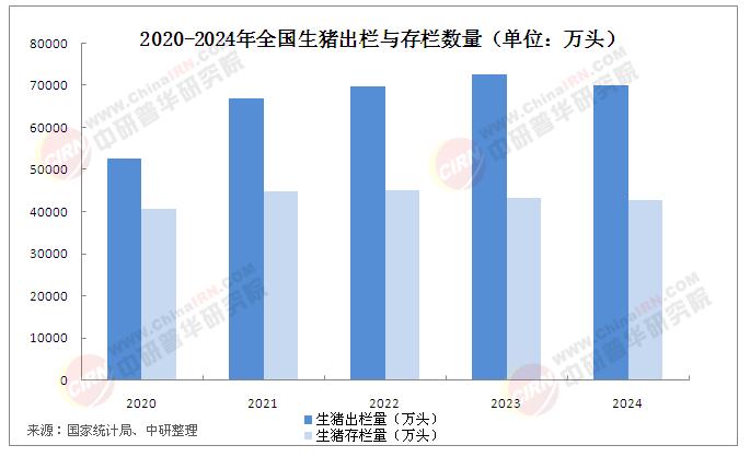 中國是全球最大的生豬生產與消費國,生豬養殖業在國民經濟中占據重要地位。據國家統計局1月17日最新公布,2024全年豬牛羊禽肉產量9663萬噸,比上年增長0.2%;其中,豬肉產量5706萬噸,下降1.5%;全年生豬出欄70256萬頭,下降3.3%;年末生豬存欄42743萬頭,下降1.6%,市場規模超萬億元。