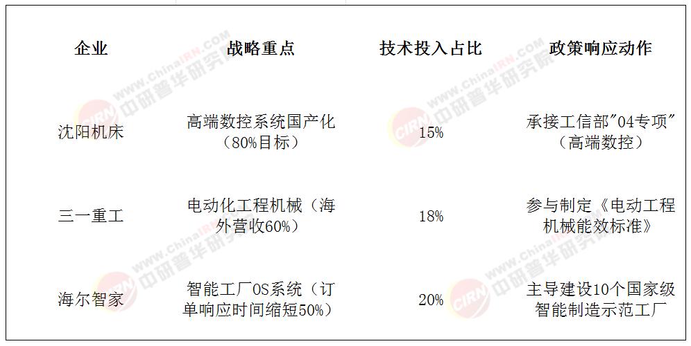對比沈陽機床、三一重工、海爾智家三家龍頭企業:
