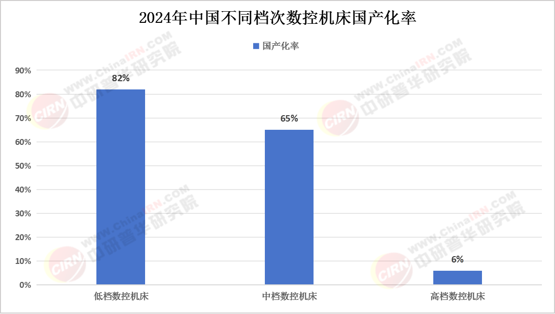 當前,中國數控機床國產化率呈現顯著的結構性分化特征。中低端市場已實現較高程度的國產化替代,其中中端數控機床國產化率達65%,低端產品國產化率更是高達82%,表明國內企業在常規加工場景中已具備較強競爭力。然而,高端數控機床領域國產化率僅6%,進口依賴問題突出,核心原因在于高精度主軸、數控系統、伺服電機等關鍵部件的技術壁壘較高,長期被德國、日本等國際巨頭壟斷。