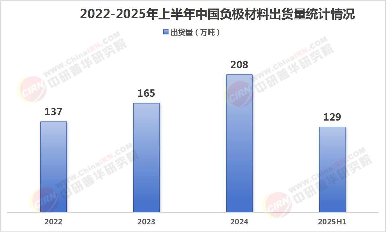 圖表:2024-2025年上半年中國負(fù)極材料出貨量統(tǒng)計(jì)