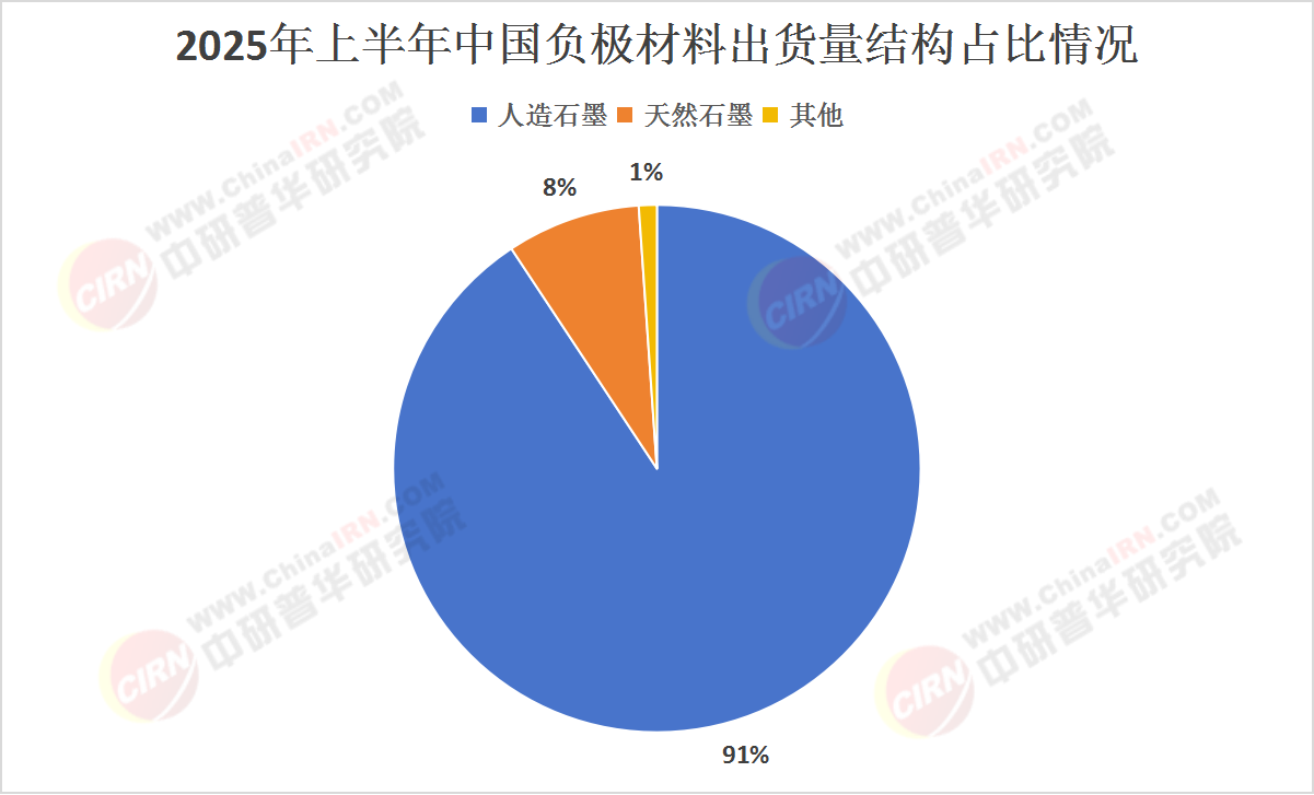 圖表:2025年上半年中國負(fù)極材料出貨量結(jié)構(gòu)占比情況
