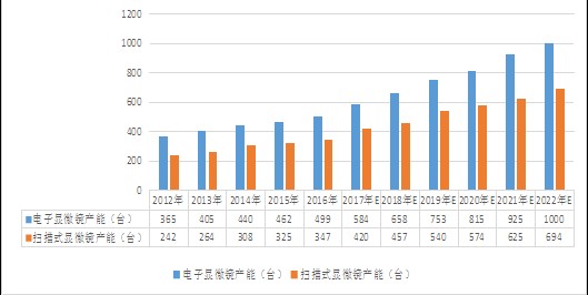 圖表:2017-2022年中國電子顯微鏡產能預測