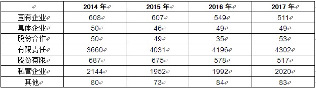 圖表:2014-2017年工程監理企業按工商登記類型分布情況