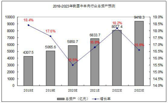 預計2018年,我國牛羊肉行業總資產約為4307.5億元,并保持不小的比率增長。