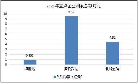 據數據顯示,2020年海能達利潤總額0.953億元,摩托羅拉利潤總額9.52億元,北風通信利潤總額4.51億元。