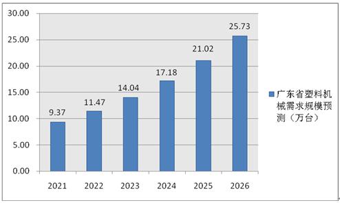 圖表:2021-2026年廣東省塑料機械行業需求規模預測(單位:萬臺)