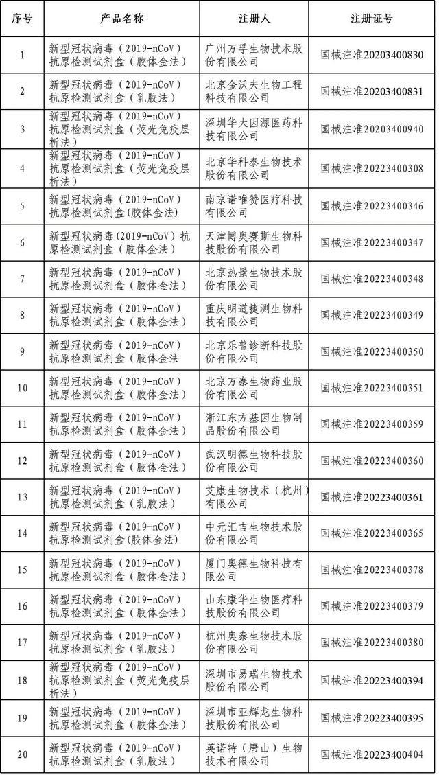 3月29日,國家藥監局經審查,再批準1個新冠病毒抗原檢測試劑產品。截至29日,國家藥監局已批準20個新冠病毒抗原檢測試劑產品。