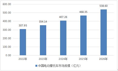 圖表:2022-2026年電動摩托車行業市場規模(億元)