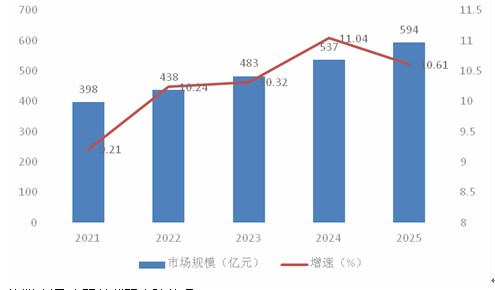 圖表:2022-2025年植物提取物行業市場規模及增速預測