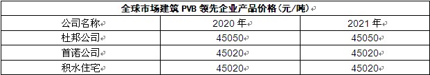 3、全球市場建筑PVB薄膜主要廠商2020和2021年產品價格列表