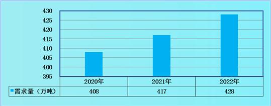 隨著技術的進步,氟化工產品的應用領域逐漸向電子、能源、環保、信息、生物醫藥等新領域拓展,使得我國對于氟化工產品的需求量不斷上升,2022年氟化工行業的需求量達到428萬噸,同比增長2.6%。