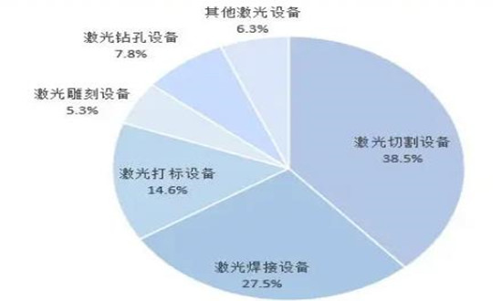 據(jù)統(tǒng)計,2021年中國激光設(shè)備行業(yè)產(chǎn)量構(gòu)成,激光切割設(shè)備占比38.5%,激光焊接設(shè)備占比27.5%,激光打標設(shè)備占比14.6%。