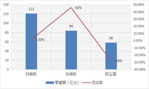 其中具體來看占據整體規模八成多的清潔電器的三大主品類——掃地機器人、洗地機、無線吸塵器。在國內,2022年清潔電器全渠道零售額約在313億元左右,同比微增約1%,相當于和2021年持平。