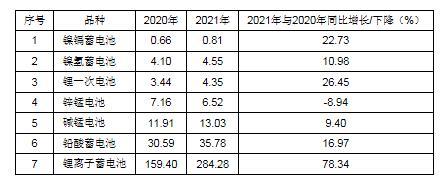 中國主要電池品種出口額為349.31億美元,2020年出口額為217.26億美元,同比上漲60.78%。其中,鋰離子蓄電池出口額占81.38%,鉛酸蓄電池出口額占10.24%,鋅錳/堿錳電池出口額占5.60%,鎳氫蓄電池出口額占1.30%,鎳鎘蓄電池出口額占0.23%。