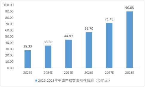 圖表:2023-2028年中國產權交易行業交易規模預測