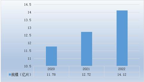 據(jù)統(tǒng)計,2018年中國軟性隱形眼鏡產(chǎn)量為9.52億片,2020年產(chǎn)量為11.78億片,2021年產(chǎn)量達到12.72億片,2022年產(chǎn)量達到14.12億片。