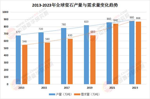 中國(guó)是全球最大的螢石生產(chǎn)國(guó),產(chǎn)量占全球比重的64.77%。近年來(lái),隨著開(kāi)采作業(yè)持續(xù)推進(jìn)和下游需求釋放,中國(guó)螢石產(chǎn)量逐年增長(zhǎng)。據(jù)統(tǒng)計(jì),2013至2023年,中國(guó)螢石產(chǎn)量由440萬(wàn)噸增長(zhǎng)至570萬(wàn)噸,年均復(fù)合增長(zhǎng)率達(dá)到較高水平。同時(shí),中國(guó)螢石消費(fèi)量也持續(xù)增加,且逐漸成為凈進(jìn)口國(guó),以滿足國(guó)內(nèi)氟化工、冶金等行業(yè)對(duì)螢石原料的需求。2023年,中國(guó)螢石消費(fèi)量達(dá)480萬(wàn)噸,進(jìn)口量同比增長(zhǎng)超過(guò)200%,出口量則呈現(xiàn)波動(dòng)減少態(tài)勢(shì),但出口均價(jià)持續(xù)攀升。