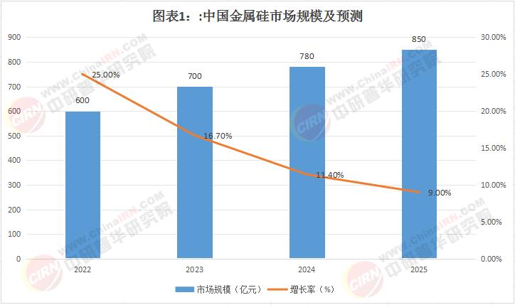 中國是全球金屬硅的主要生產(chǎn)國和消費國。2022年市場規(guī)模約為600億元人民幣,預(yù)計到2025年將達(dá)到850億元人民幣,年均復(fù)合增長率為9.5%。這一增長主要得益于光伏、有機硅和半導(dǎo)體行業(yè)的強勁需求。