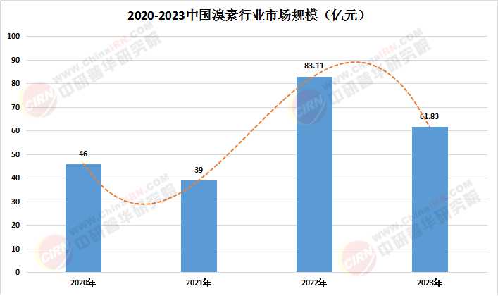國(guó)內(nèi)市場(chǎng)方面,溴素行業(yè)市場(chǎng)規(guī)模持續(xù)擴(kuò)大。數(shù)據(jù)顯示,2022年我國(guó)溴素行業(yè)市場(chǎng)規(guī)模從2016年36.59億元增長(zhǎng)到了83.11億元,2023年我國(guó)溴素行業(yè)市場(chǎng)規(guī)模為61.83億元。隨著新興領(lǐng)域需求的增長(zhǎng),國(guó)內(nèi)市場(chǎng)有望迎來(lái)新的發(fā)展機(jī)遇。