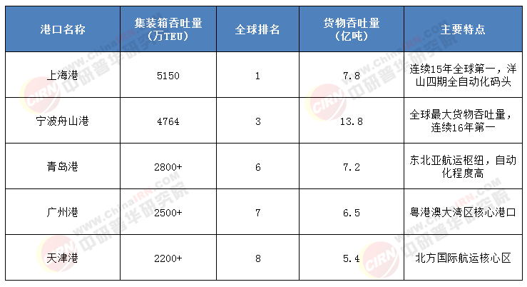 表1:2024年中國主要港口吞吐量及全球排名情況